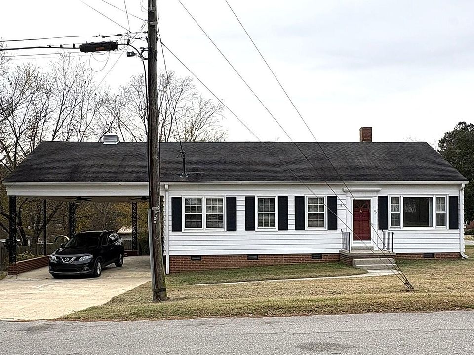 Beautifully updated 3 Bedroom, 1.5 Bath Ranch close to Downtown! Entertaining friends and family is easy with the expansive open kitchen/family room space. In addition to the kitchen island, there is plenty of space for a dining table. Fireplace and built-in bookcase in family room. Newly refinished hardwood in all bedrooms, hall and living room. Kitchen granite counters with glass tile backsplash. Large carport w/ ceiling fans that could be used as an outdoor space for entertaining. Large side yard and corner lot. Come see!!!