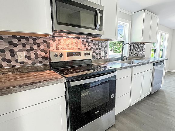 Peaceful country living just under 10 miles from Jacksonville! This beautifully updated 3-bedroom, 2-bath home gives your family plenty of room to soak up all summer has to offer. Located on 1.97-acres in the sought-after Richlands School District. When you step inside the new lvp floors welcome you to a light and cozy living area with a split floor plan. The kitchen has been newly updated and features a galley style walkway that opens up into a dining area and pantry. The primary bedroom flaunts a lavish Spa inspired bathroom and incredible walk in closet! The ensuite features dual vanities with rich, warm wood cabinetry and sleek black hardware, offering abundant storage and a timeless contrast against the crisp white countertops. The zero-entry, walk-in tiled shower is the showpiece of the room, flanked by glass partitions for an open, airy feel. Contemporary marble-look flooring extends throughout the space, tying together the clean, modern aesthetic. Thoughtfully placed recessed lighting enhances the brightness and adds a spa-like ambiance. Recent upgrades include a metal roof (2018), new HVAC (2019), new windows, new cabinetry, and new modern fixtures throughout, kitchen sink, microwave, dishwasher, interior doors, shower heads and baths. Two storage sheds offer plenty of room for tools, hobbies, or outdoor gear along with your man made lake!