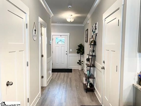 This like-new 3 bedroom Greer townhome is zoned for Riverside schools and is a replica of the model home so it has all the bells and whistles. This home boasts all the latest selections of tile backsplash, granite counters, luxury vinyl plank flooring, large tile and glass master bath shower, and tankless water heater. Additional features in the home include a flush- mount fireplace with feature wall, blinds, upgraded lighting and fixtures and the sellers have added a tasteful white vinyl privacy fence. This is a maintenance free community and just $135 per month covers the lawncare, home exterior maintenance and features a small dog park and a community recreation area with fire pit. Branchwood is a unique combination of classy-white hard-plank siding and craftsman style shake and wood beam accents. Even more unique is that it is nestled in a lovely wooded hidden area off the busy road. Priced for a quick sale and under the less- upgraded recent sales.