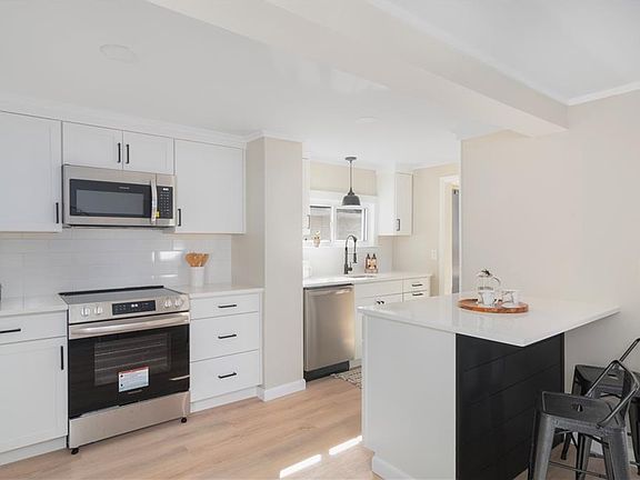 Updated Bungalow conveniently located in Warwick. This 2 bedroom and 1 bathroom home features an updated kitchen, oversized living room and fully fenced in backyard. Centered at the heart of the home is a beautifully updated kitchen, featuring stainless steel appliances, sleek backsplash and quartz countertops. Large center island perfect for hosting. Just off the kitchen find a renovated first floor bathroom. Brand new vinyl plank flooring throughout the main level as you continue through the dining area to a well sized living room. Upstairs find two bedrooms with brand new carpet. Additional features include vinyl siding and replacement windows. A move in ready home at an affordable price. Schedule your private showing today at 107 Greylawn today!