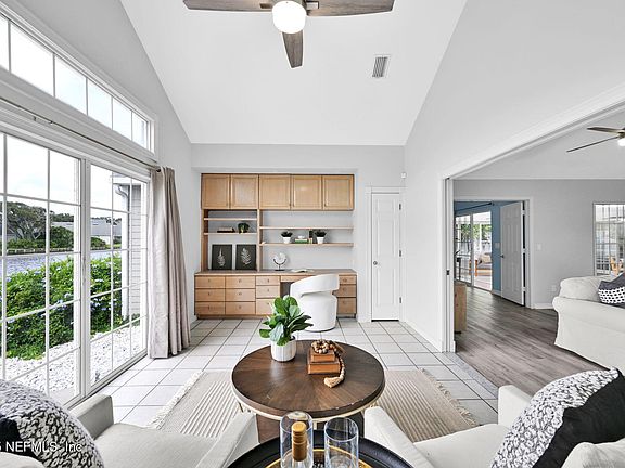 Meticulously renovated waterfront home on a quiet cul-de-sac in the securely gated neighborhood of Villages of Vilano. This move-in-ready 3BR/2BA home offers a fully updated interior, including a 2024 custom kitchen with GE Café appliances, LVP flooring (2022), and fresh paint throughout. Major systems have all been replaced: new roof, hurricane-impact windows, HVAC, hot water heater, skylights, and toilets — all brand new in 2024. No carpet to be found here! Private paver courtyard and new fencing add outdoor charm. Enjoy peaceful lake views from one of two enclosed sunrooms. Third bedroom is being used as the second sunroom. HOA covers lawn care, irrigation (including water), and trash pickup. Amenities include indoor/outdoor pools, private beach walkover, tennis, fitness, RV/boat storage, and marina access. Just minutes to Vilano Beach and downtown St. Augustine. Life is a breeze at Villages of Vilano. Truly low-maintenance, luxury coastal living.
