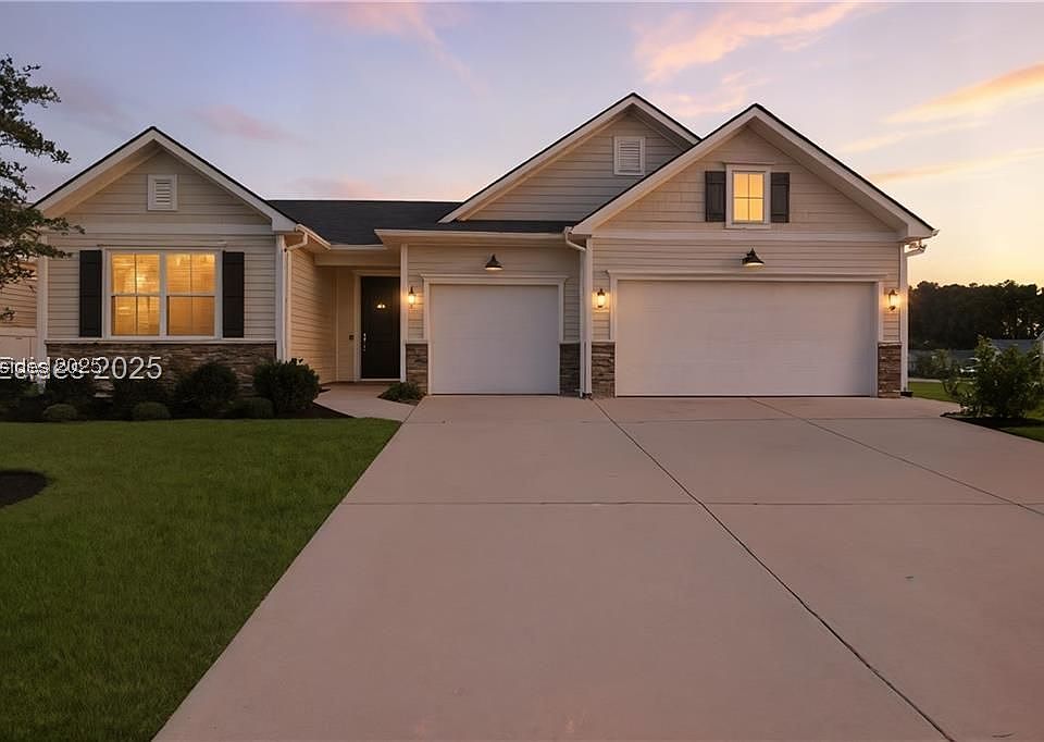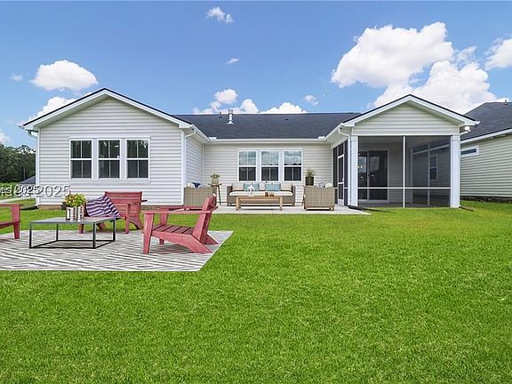 Discover modern Lowcountry living in the GATED Lakes at New Riverside community. This stunning, single-story home on a corner lot built in 2022 offers an open-concept with 4BR, 3BA, 2,562 sqft of cozy living space with a 3 car garage. Highlights include a fireplace, large kitchen with island, formal office, & a spacious primary suite with a large closet. Enjoy serene lagoon views from the screened porch. Residents benefit from resort-style amenities: pool, pickleball, fire pit, playground with easy access to Hilton Head, Savannah, & Beaufort, Your children can be enrolled at the Bluffton School Complex for elementary, middle & high school.