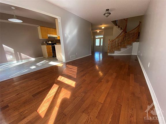 Location, location, location! Sun filled three bedroom townhome located in the heart of Kanata Lakes and the top ranked schools served. Short walking distance to Kanata centrum shopping center, Bus stops and Golf, three minutes to pharmacy, Farm boy, shops, restaurants, parks, bookstore, and many walk pathways around. Extremely convenient! Deep lot with an extra long driveway allows 3 cars. Oak hardwood on the open main floor, kitchen with added cabinetry, gas fireplace, great size of three bedroom along the upper hall. Spacious master bedroom with 4 piece ensuite and walk-in closet. Almost brand new washer, one year old stove. New furnace, New air conditioning, Duck cleaning September, 2022, new Attic insulation saving your bill. Fully finished basement with laminate flooring to give more space and storage area. Fully fenced private backyard. No smoking and no pet.