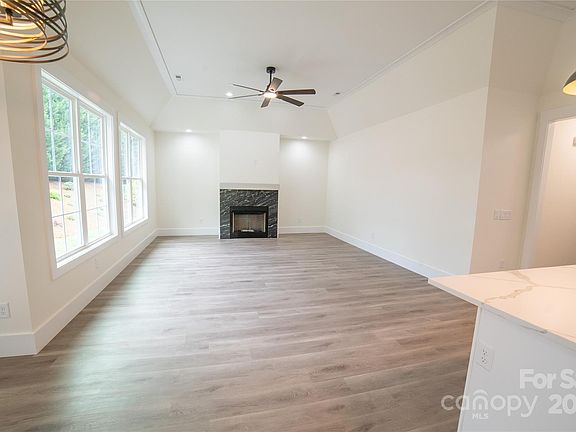 Amazing new construction in Henry's Glen in Morganton. Main level entry front porch leads to large open great room, kitchen, and dining area. Great room has 12 foot ceilings with crown molding and gas fireplace. Kitchen has quartz countertops, soft-close cabinetry, and Frigidaire appliances. Split bedroom plan with two bedrooms and bath off the entrance. Primary bedroom has 9 foot ceilings and large windows. Primary bath has ceramic floors, large ceramic shower, double vanities, and walk-in closet. Escape to the large room over the garage with separate heat/air. Off the great room is a nice back porch. Sod yard with nice landscaping.