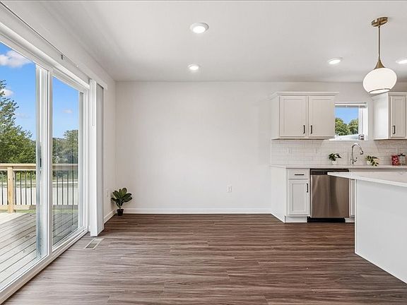 Welcome to this brand-new modern ranch home blending comfort, functionality, and style. With 3 bedrooms and 3 full baths, it offers plenty of room for relaxation and entertaining. The open-concept main level features a bright living room with large windows, a spacious dining area, and a stylish kitchen with custom cabinetry, center island, and sleek finishes. The primary suite boasts a private bath and walk-in closet, while two additional bedrooms provide flexibility for family, guests, or office space. The finished basement offers a bedroom, full bath, and versatile living area perfect for a family room, gaming or even a theater all with walk-out access to green space. Enjoy outdoor living on the deck plus a 2-car garage, energy-efficient design, and a convenient location near schools, parks, and shopping. Move-in ready and waiting for you—schedule your private tour today!