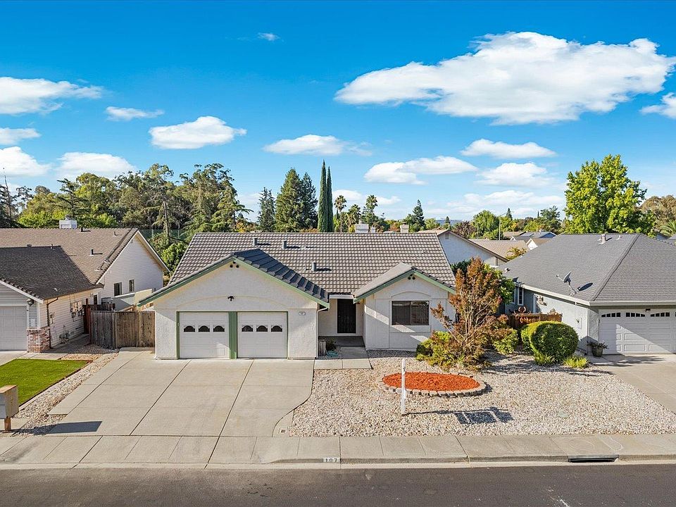 Custom single-story home on a quiet court with no rear neighbors, offering privacy and a rare setting in Vacaville's Leisure Town. This updated 3-bedroom residence features vaulted ceilings, abundant natural light, new non-slip vinyl flooring, and a spacious family and dining room with a stunning brick fireplace. The kitchen highlights modern cabinetry, recessed lighting, stainless steel appliances, and bar seating. The oversized primary suite includes a sitting area ideal for morning coffee or a home office, a walk-in closet, and an en-suite bathroom. Additional features include an indoor laundry room with cabinetry and sink. The larger backyard showcases a beautiful deck, covered patio area, planter boxes, and low-maintenance landscaping, creating the perfect space to relax or entertain. Residents enjoy an affordable HOA with access to a pool, gym, and community amenities in this 55+ neighborhood.