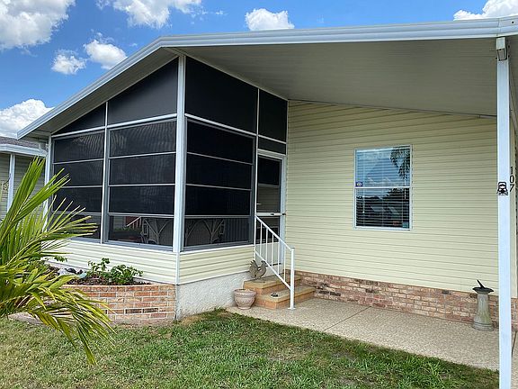 Don't miss out! If charming and cozy is what you're looking for you found it here! This adorable well taken care of home at 107 Jacaranda Way in Parrish is waiting for you! This home features comfy 2-bedroom, 2 bath located in a well manicured 55+ community and move in ready. A large living room that leads to your newly screened lanai perfect for your quiet morning coffee that was made in your roomy kitchen. Dinner is served in the cozy dining area with a view of swaying palm trees that line the streets. This home is a 1994 Fleetwood with 936 sq. ft. of living space. Large 2-3 car carport leads to a spacious laundry room. The lot rent is $730 per month and includes mowing, edging, trimming, 2 HD boxes, 200 cable channels and high speed internet. The amenities in the park include an Olympic size swimming pool, large spa, outdoors kitchen, fire pit, tennis courts, shuffleboard courts, horseshoes, darts, chair volleyball, ceramic, darts, bingo, live band dances every month, card room, library, exercise room, billiard room. If you are looking for an active community or low-key living The Gardens is all you need. BONUS! Well taken care of furnishings specified remain with the home. You won't want to miss this one as it's priced to sell. All listing information is deemed reliable but not guaranteed and should be independently verified through personal inspection by appropriate professionals. Integrity Mobile Home Sales cannot guarantee or warrant the accuracy of this information, measurements, or condition of any property. Measurements are approximate. Lot rent is subject to change.