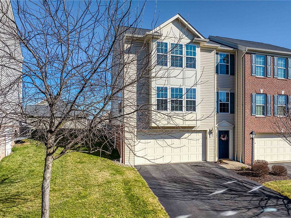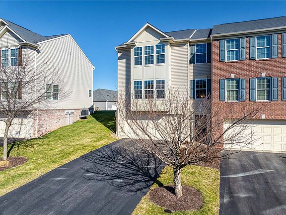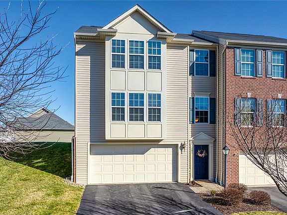 Conveniently located in desirable Cobblestone community, this end unit townhome offers a blend of sophistication, comfort,& convenience. The main living level includes a spacious living room w/walls of windows allowing natural light to fill the space. The stunning gourmet kitchen opens to the dining space and boasts neutral backsplash, granite counter tops, a sizeable pantry & an abundance of cabinetry. It comes fully equipped with stainless appliances with tasteful black accents. The corner stainless sink and windows placed above it add natural light to the room. Hardwood floors adorn the kitchen, dining and powder room. A large 26x15 custom sized deck allows one a great entertaining space and is accessed right off the kitchen/dining area. Upstairs level offers 3 bedrooms, 2 full baths and a laundry closet with electric dryer&washer. Primary suite has a vaulted ceiling, walk-in closet and en-suite. Finished Basement is located on lower level perfect for office/exercise/guest bedroom.