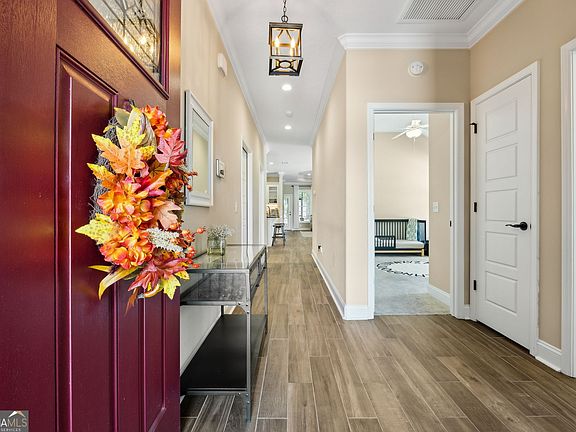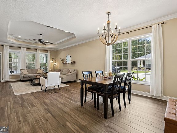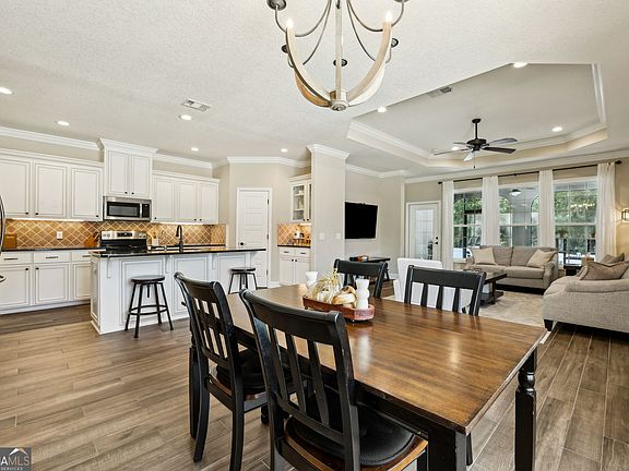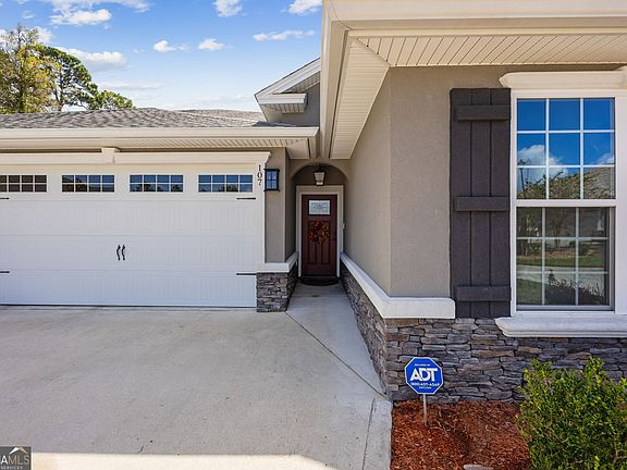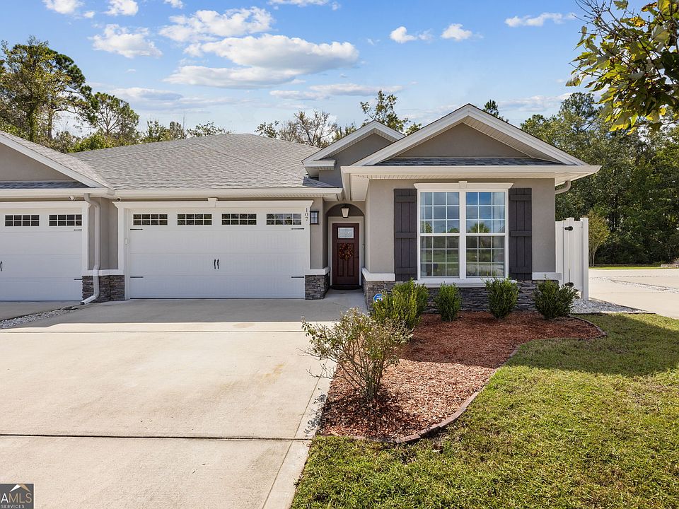 Welcome home to Laurel Landing, nestled in the beautiful Laurel Links Public Golf Community. This charming single-family attached stucco villa offers the perfect blend of comfort, convenience, and privacy. The fenced backyard backs up to a serene tree line, creating a peaceful retreat to enjoy from your screened-in porch. Lawn care and irrigation water are included in the HOA, so all you need to maintain is your flower bed giving you more time to relax and enjoy your home. Inside, you'll find wood-look tile flooring throughout the living, dining, kitchen, and bath areas, creating a warm and inviting atmosphere. Elegant crown moldings and trey ceilings enhance the living and kitchen areas, adding a touch of architectural detail and sophistication. The open-concept layout is ideal for both everyday living and entertaining. The kitchen features granite countertops, a spacious island, a walk-in pantry, and stainless-steel appliances. The split-bedroom floor plan offers a large owner's suite overlooking the backyard. The owner's retreat also features crown molding and a trey ceiling, elevating the sense of luxury. The spa-like en-suite includes double vanities, a soaking tub, a huge open tiled shower, a private water closet, and an oversized walk-in closet with custom built-ins. Two additional guest rooms with vaulted ceilings provide comfortable and stylish spaces for family or guests. The laundry room has been cleverly designed to include room for a desk, adding versatility to the home. Exclusive Laurel Landing amenities include a sparkling pool with a separate shallow area, a community fitness room with weight equipment, and two playgrounds, one at the pool and another closer to the villa at the end of Laurel Landing Blvd. Located just minutes from Naval Submarine Base Kings Bay, I-95, shopping, dining, schools, Historic St. Marys Waterfront Park, and Crooked River State Park, this home offers easy access to everything you need. Commuting to Jacksonville, Brunswick, or the beautiful Georgia and Florida beaches is a breeze. Experience easy living and a vibrant lifestyle-schedule your private tour today!