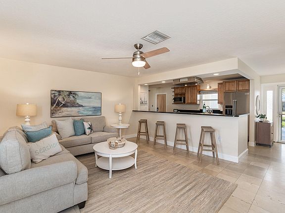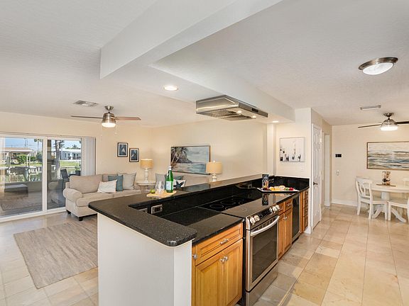 Relax on the large screened back porch with panoramic views of the canal and swaying palms. Inside, indulge in luxury with the HALO LED Air purifier, open split floor plan complete with newer kitchen appliances, COREtec Vinyl Plank in bedrooms, and Marble floors in the main areas.