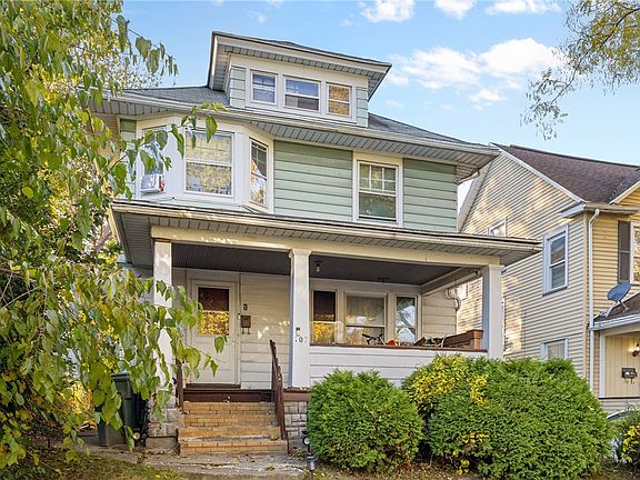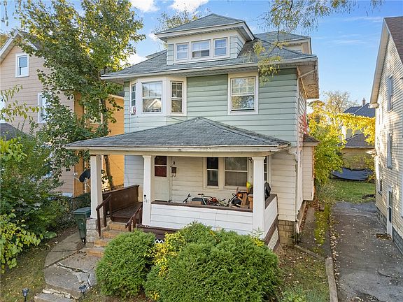 Upstairs, the primary bedroom features a private enclosed balcony—perfect for morning coffee or quiet evenings. A walk-up attic offers incredible potential to finish for additional living space, home office, or studio. The home also includes updated 150-amp electric service and a new hot water tank for peace of mind.