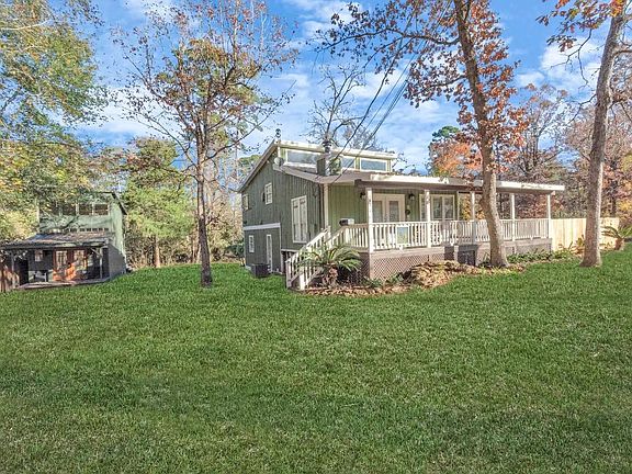Welcome to 107 Lazy Trail, Montgomery, TX 77316 Custom 3-level home with a private fenced pool, huge deck, and outdoor bar perfect for enjoying time outside! Main level features living area and master suite. Downstairs includes 2 bedrooms, 1 bath, and a private entrance. Enjoy the beautiful outdoor space your own slice of paradise! Side note: on same lot here small 450 Sqft ADU currently used as an Airbnb.