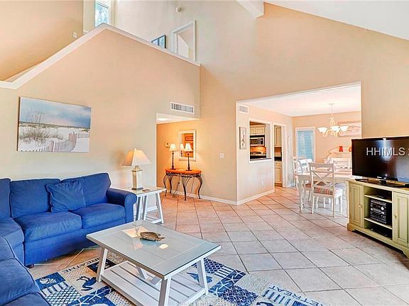 See 3D Matterport video Beautiful Cape Cod style end unit 3BR/3BA townhouse, located in the world famous Harbour Town area of Sea Pines and walking distance to the harbor. Views landscaping and Heritage Villa tennis courts. Large tile flooring in Entry Foyer, Living Room, Dining Room, Kitchen and Guest Bath. All bedrooms include carpeted flooring. Kitchen features upgraded cabinetry and Maytag SS appliances. Glass sliding doors access the e large deck on the rear of this end unit, perfect for secluded outdoor grilling and entertaining. Is "turn-key" ready for your enjoyment and a fabulous investment opportunity. Rental history available.