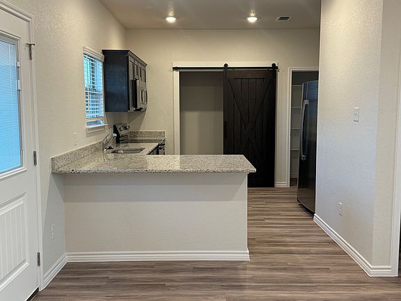 Wood privacy fenceSpacious backyardStainless steel appliancesThree inviting bedroomsSliding barn doorModern kitchenPrivate en-suite bathroom