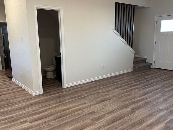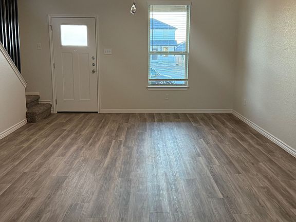 Welcome to this inviting two-story home where comfort and style come together. As you step inside, you're greeted by an open living area that's ideal for entertaining or relaxing. A convenient half bath is tucked off the main space, and the living room flows seamlessly into a bright, modern kitchen featuring stainless steel appliances, a spacious pantry, and plenty of counter space for cooking and hosting. Just off the kitchen, you'll find a laundry room accented by a stylish sliding barn door a perfect touch of rustic charm. Upstairs, you'll discover three inviting bedrooms. The secondary bedrooms are comfortably sized and share a full bathroom with a tub/shower combo. A hallway storage closet adds even more functionality. The primary suite offers a relaxing retreat, with a walk-in closet and a private en-suite bathroom that includes a standing shower with sliding glass doors and a built-in cabinet for added storage. Outside, enjoy a spacious backyard surrounded by a wood privacy fence perfect for pets, play, or outdoor entertaining. This home offers comfort, functionality, and style in every corner ready for you to move in and make it your own!