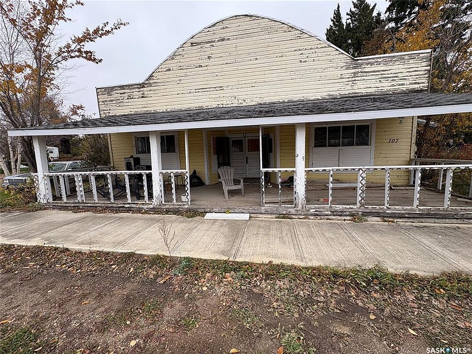 Where can you purchase such a unique home for this price ?!! This warehouse/saloon style home has many possibilies. As you enter the front door there is a large great room that could be converted into more living space or with approval from the Town the potential for a small business. The home has 3 decent sized bedrooms and flows into a rustic living room area at the back of the house. Wood floors make this space feel warm and cozy. There are two furnaces keeping you and loved ones warm all winter in the beautifully treed area North of Yorkton. Sit on the front porch with your cup of coffee and await the wildlife to go by. Sold as is.