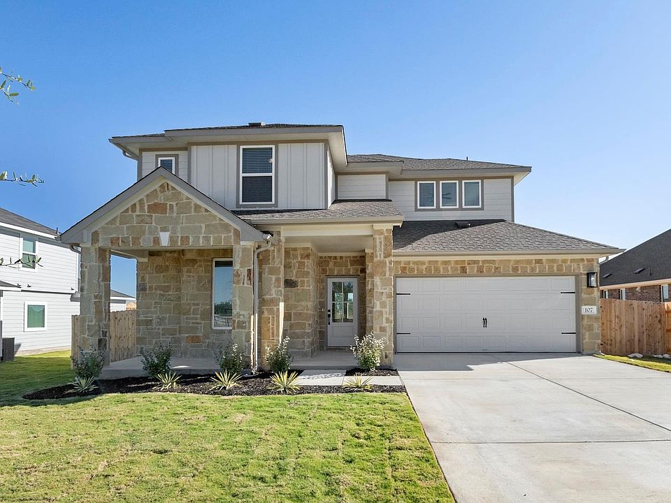 MLS# 5292851 - Built by Pacesetter Homes - Ready Now! ~ Discover the perfect blend of modern design and functionality in this stunning single-family residence located in the desirable Grande Estates subdivision. Spanning an impressive 2,568 square feet, this home is poised for completion in August 2025, offering a fresh and contemporary living space tailored to today's lifestyle. This thoughtfully designed residence features a total of 5 bedrooms, including 3 full baths, ensuring ample space for family and guests. The interior boasts an open floorplan, allowing for seamless flow between living areas. The eat-in kitchen is a chef's dream, complete with a central island and pantry for additional storage. Enjoy the convenience of modern amenities, including double vanities in the bathrooms, recessed lighting in the kitchen, and dedicated hookups for both a washer and dryer. The home's design emphasizes comfort and practicality, featuring ceiling fans and walk-in closets that enhance everyday living. The foundation is solidly built on a slab, and the roof is composed of durable materials, ensuring longevity and style. Outside, the property is beautifully landscaped with both front and back yards, equipped with an automatic sprinkler system to simplify yard maintenance. Thoughtful exterior lighting enhances the home's curb appeal and provides a welcoming ambiance during evening hours. With a 2-car garage, there’s plenty of space for vehicles and additional storage. Located within the highly regarded Burnet Independent School District, this home is just a short distance from Bertram Elementary.