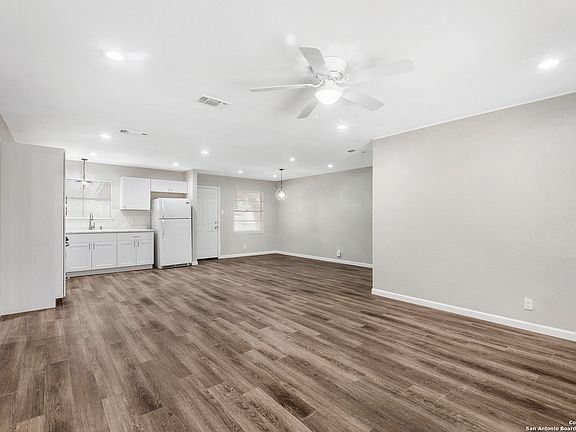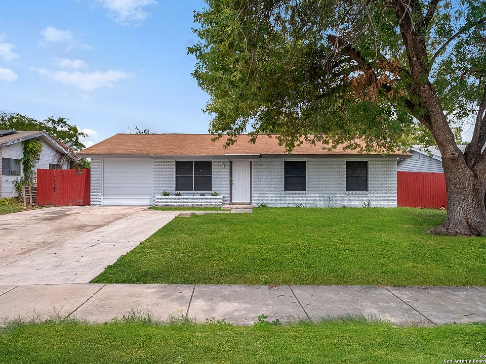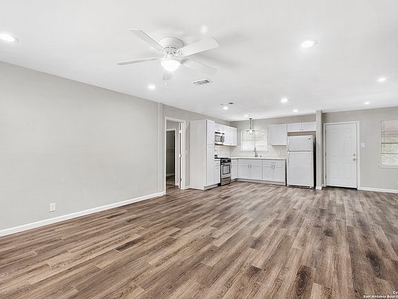Ready for you to call home! This beautifully renovated single story with 4 bedrooms, 1.5 baths features an open floor plan perfect for entertaining. The updated kitchen offers brand new cabinets, subway tile backsplash, with stainless steel gas range and microwave oven. No carpet, all new vinyl plank flooring throughout! Light up every corner with these appealing LED recessed lighting in main areas to include the converted garage.  Use the converted garage as a flex room or a 4th bedroom! Other upgrades include brand new fans and fixtures, new solar screens in all the windows, brand new HVAC system & central heater, newly installed wall and attic insulation, fresh paint throughout the entire interior and exterior of the house. The spacious yard offers mature trees, a covered back patio and freshly painted storage shed. A must-see!   Quick access to 410, Hwy 90, 1604, near Lackland AFB, Sea World, restaurants, shops, parks, entertainment, and more!