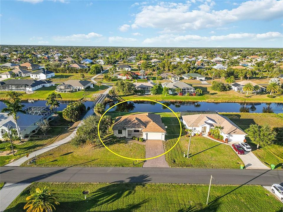 Perfectly positioned on a scenic waterway, this 2017 CUSTOM Breakwater Construction home offers the ideal layout with an ideal setting. With over 26 miles of canals throughout the community, enjoy fishing right from your own backyard, leisurely boat rides and the added sense of openness provided by the nearby golf cart bridge and walking path. From the moment you arrive you’ll appreciate the elegant painted driveway, front porch, elevation and IMPACT WINDOWS. Inside, a bright and open layout features a BRAND-NEW KITCHEN at the heart of it with stainless steel appliances, new cabinetry, and granite countertops -complemented by a FRESHLY PAINTED INTERIOR and tile throughout. Other UPGRADES include the CROWN MOLDING, COFFERED CEILINGS, and upgraded paneled interior doors. The primary suite is oversized with a big picture window for water views, large walk-in closet, access to the lanai and an ensuite bathroom featuring dual sinks, beautifully tiled Roman shower, and toilet closet. Tucked down a hallway on the opposite side are the additional two guest bedrooms and guest bathroom. Outside, there is room for relaxing on the screened in lanai with a bonus slab poured outside for grilling, gardening and soaking up the Florida sun. The low-maintenance yard is irrigated by a RECYCLED SPRINKLER SYSTEM - fed conveniently from the canal with plenty of room for a pool or added fence. Rotonda West provides an aesthetically pleasing neighborhood with low fees and convenient access to five community golf courses, a central park with playground, tennis courts, RV/boat storage and is just minutes away from the beautiful beaches of Boca Grande and Manasota Key! Schedule your showing today to experience the quality, style, and elegant Florida lifestyle this property offers!