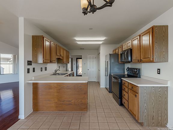 Enjoy Breathtaking Hill Country Views! If you've been searching for the perfect view, this is it! Take in the spectacular southeast panorama of the Texas Hill Country-perfect for afternoon relaxation without the harsh sun. The main level features the updated primary suite, a convenient half bath, an open kitchen, a laundry closet, and a welcoming living room with fireplace. Downstairs, you'll find a spacious second living area that can easily serve as a bedroom, office, or guest suite. Complete with built-in cabinetry, a cozy fireplace, and direct access to the covered patio, this space is ideal for entertaining or quiet retreats. Both lower-level rooms open to the outdoors, bringing in the beauty of the view. Recent updates include a NEW Class 3 impact-resistant roof with a transferrable warranty from local Cypress Roofing, brand-new gutters, and a new garage door on the way. All this, plus a location close to shopping, medical facilities, restaurants, and entertainment-with quick access to I-10. Come and See!!