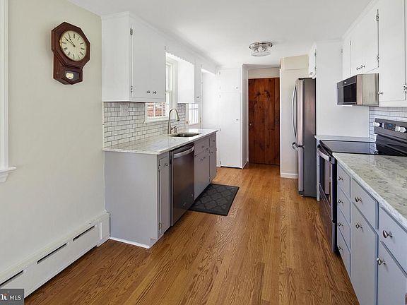 Absolutely charming 3 bedroom, 1.1/4 bath with a detached 2 car garage located in a lovely setting across from parkland. Slate foyer welcomes you into a spacious living room with a wood burning stone fireplace flanked by built ins. Kitchen is warm, inviting and recently updated with quartz countertops, ceramic backsplash, stainless appliances and wood flooring. Kitchen is open to a quaint, light, sun room wrapped in windows and doors with a nice breeze and peaceful views of a lovely, landscaped yard. Handsome den/family room features sliders leading to a slate patio. Master bedroom is spacious and additional bedrooms feature closets and built ins. Home boasts gleaming hardwood floors, new windows on 1st floor and fresh paint. Detached 2 car garage with storage above is a huge bonus! Conveniently located across from Banning Park tennis courts, I95 and all major attractions.