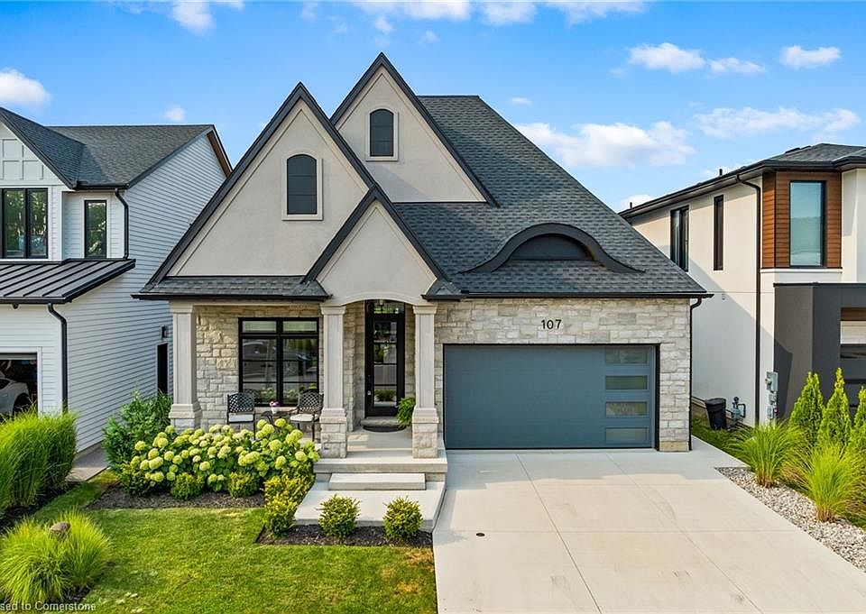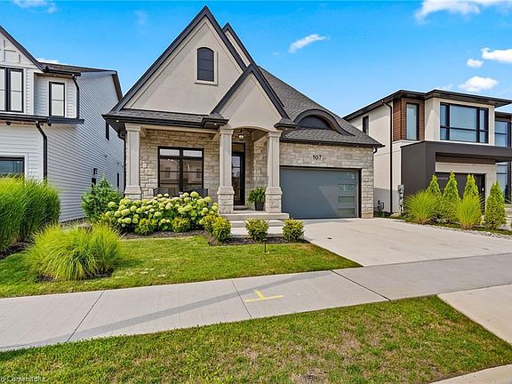 Discover low-maintenance luxury living in this beautifully designed bungalow, perfectly situated between Niagara-on-the-Lake's vineyards and the amenities of Niagara Falls. This home offers the ideal blend of style, function, and comfort for today's modern buyer. Step inside to soaring ceilings, elegant panel detailing. The chef-inspired kitchen features quartz countertops, custom built-in cabinetry, and a premium Thermador gas stove, perfect for entertaining. With 5 spacious bedrooms, a bonus room ideal for a home gym or office, and two full kitchens (including one in the finished basement), the layout is ideal for multi-generational living or hosting guests. Relax by one of two gas fireplaces or enjoy the outdoors on the covered patio. Notable Features: Engineered hardwood flooring throughout, Heated floors in all bathrooms, Motorized electric blinds, Second kitchen in basement, AC (2022), HVAC (2022), Roof (2022) In-ground sprinkler system, Double garage + driveway parking. Some photos have been virtually staged.