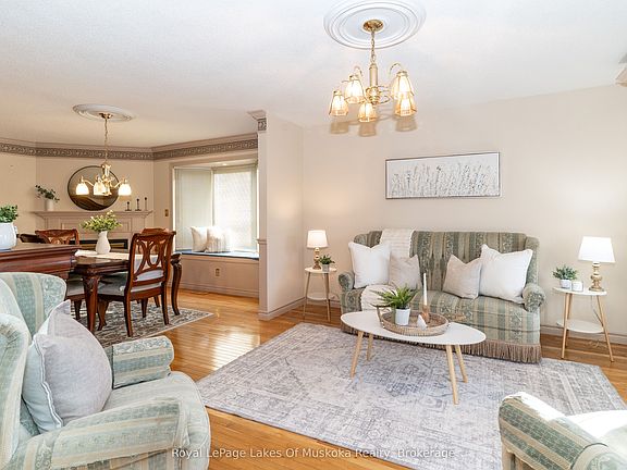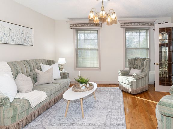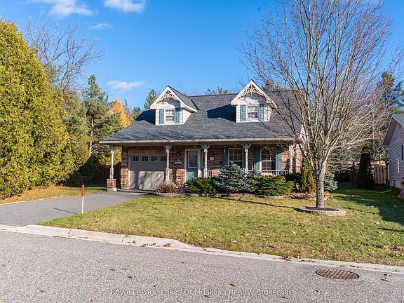 Charming & well maintained in-town home located only minutes from downtown Bracebridge! This wonderful 3 bed/2 bath home features a welcoming entrance foyer into bright & cheery main floor offering; inside access to the single car attached garage, living room & formal dining with hardwood floors & gas fireplace, kitchen w/stainless appliances & ample cupboard space, main floor primary bedroom, 4pc bath & a lovely 3 season sunroom with cathedral ceilings & walkout to the back yard patio. 2nd floor features 2 generously sized bedrooms w/dormers & a 4pc bathroom. Basement has a finished Rec room area with a free standing gas fireplace & a large utility/laundry room with lots of storage space. Forced air gas heating, central air conditioning, on demand hot water, central vac & town services make this lovely home a wonderful low maintenance option for you and your family.
