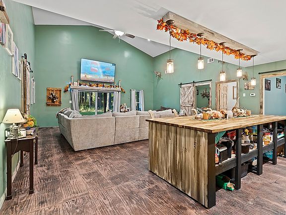 Barndominium Living on 17.30 Acres with Private Neighborhood Lake Access Experience the perfect blend of rustic charm and modern comfort in this 3 bedroom, 3 bath, 2-story barndominium set on 17.30 private acres with exclusive neighborhood lake access just minutes from your door. Inside, soaring vaulted ceilings, sliding barn doors, and custom stamped concrete floors set the tone for the open-concept living space. The heart of the home is the chef-inspired kitchen, complete with a massive butcher-block island, farmhouse sink, open shelving, and a huge walk-in pantry — a dream setup for entertaining and everyday living alike. The primary suite is a private retreat, featuring a spa-style bathroom with a freestanding soaking tub, double vanity, and a huge walk-in closet. The second bedroom also includes its own oversized walk-in closet, making storage effortless. Upstairs, the loft living area overlooks the great room and showcases a huge catwalk-style storage system built directly into the walls, providing an abundance of hidden storage unlike anything you'll find in a typical home. Additional highlights include a large laundry/mudroom and multiple full baths that add comfort and convenience throughout. Step outside and enjoy true country living: Wrap-around porch for relaxing mornings and sunsets Oversized 3-car garage + separate workshop for tools, toys, or a business setup 17.30 acres of private land for trails, hunting, gardening, or expansion Exclusive neighborhood lake access for boating, fishing, and watersports This property isn't just a home — it's a lifestyle. With its unique design, abundant storage, and private lake access, this barndominium is ready to welcome its next chapter.
