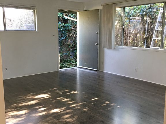 Freshly renovated, Large 2-bedroom, 1-bath private back unit in a nice 4-plex. One level with newer laminate flooring and fresh paint throughout. Gas cooking, gas heat, and large main bedroom with a big walk-in closet. Large living area with slider to a private fenced patio with vaulted ceiling. Washer/dryer hookups plus covered carport parking. Water, sewer and garbage are included! Quiet street, Just blocks to downtown Talent including Sweet Beet Station, groceries, library and more. These units rarely come available. Showings starting 11/1.