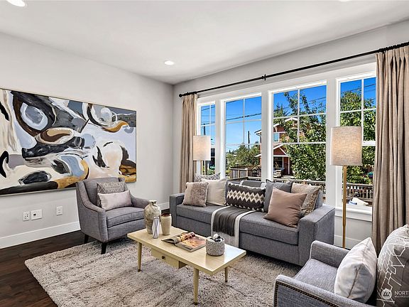 Perfectly situated in Phinney Ridge, this home has an ideal layout: main level is an expansive open floor plan with chef's kitchen & first ensuite bedroom. Upstairs, the oversized primary bedroom includes water views, walk-in closet, & luxurious bath. Additional 2 bedrooms and bath on the same floor. Basement is an entertainer's dream, with full-sized wet bar, projection movie theater with surround sound, & 5th bedroom with 5-piece bath. Separate entrance offers flexibility. Home also includes patio with fire pit, true 2-car garage, A/C, high-end appliances, & integrated smart technology. Located walking distance to restaurants and Woodland Park Zoo, this home combines luxury, functionality, and convenience in an unbeatable location.