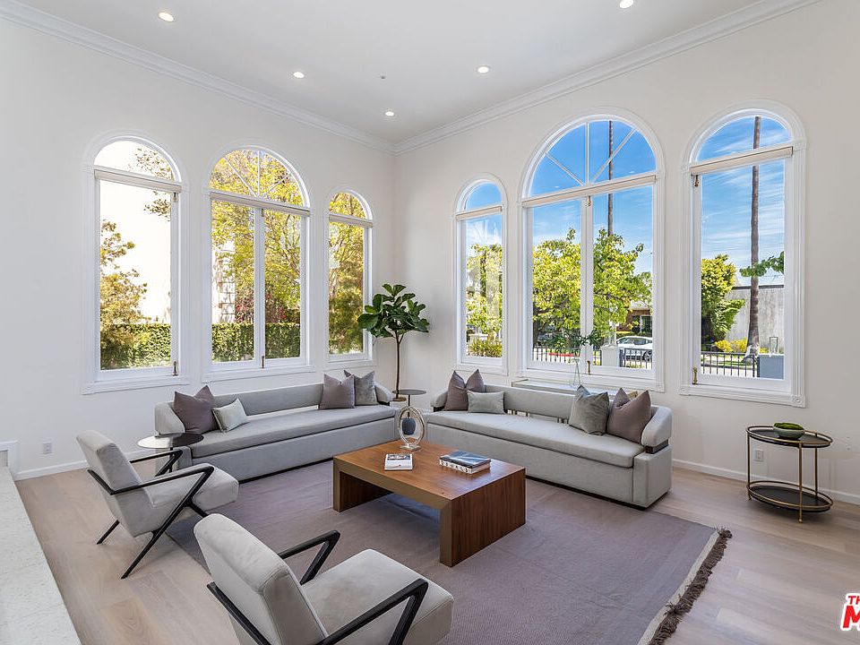Tucked in the coveted Flats just north of Wilshire, this recently refreshed architectural gem blends modern simplicity with timeless sophistication just moments from the iconic Beverly Hills Bermuda Triangle. A grand double-height entry welcomes you with radiant natural light, framing a custom sun-drenched chandelier and an expansive living room centered around a sleek built-in fireplace. The state-of-the-art kitchen is a culinary dream, outfitted with Miele and Wolf appliances, and anchored by a striking center island perfect for entertaining. The thoughtfully updated first floor transitions seamlessly to the original charm of the upper level, where a custom staircase leads to three en-suite bedrooms each with sun-soaked balconies and private decks. The primary suite is a serene retreat featuring treetop views, a walk-in closet, an ethereal spa-like bath and its own private veranda. A versatile fourth bedroom has been tailored as a stylish home office. Step outside to your private outdoor sanctuary with a tranquil patio and a sparkling pool ideal for soaking in the best of LA living. Experience modern luxury and effortless style in one of Beverly Hills' most desirable neighborhoods. Your dream home awaits.