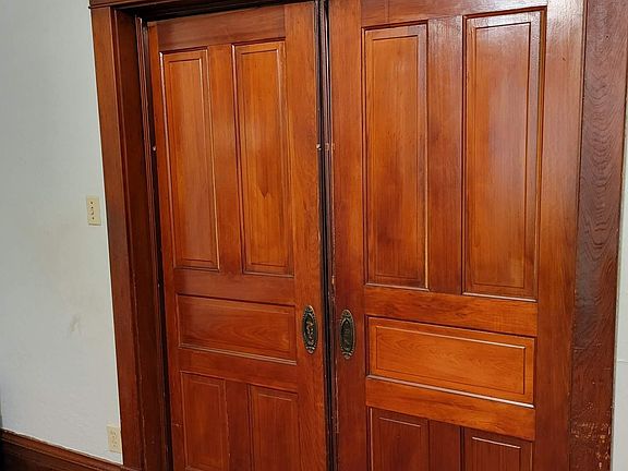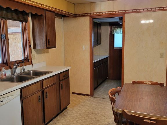 This is a 3 bedroom home that is a great starter home , centrally located in town. On the main floor there is an enclosed front porch , living room, dining room, kitchen, laundry room and a 1/2 bath. The home does have a lot of the natural hard wood flooring and beautiful pocket doors to separate the dining room and living room off. In the upstairs there are 3 bedrooms, and full bathroom. The bedrooms have natural hard wood floors and some built in closets. Also a small room that leads you to the upstairs attic. On the North side of the home is an attached single car garage and in the back yard another detached garage and utility shed. The roof was replaced in 2016 and the home is vinyl sided. Add some TLC to the home to make it yours!