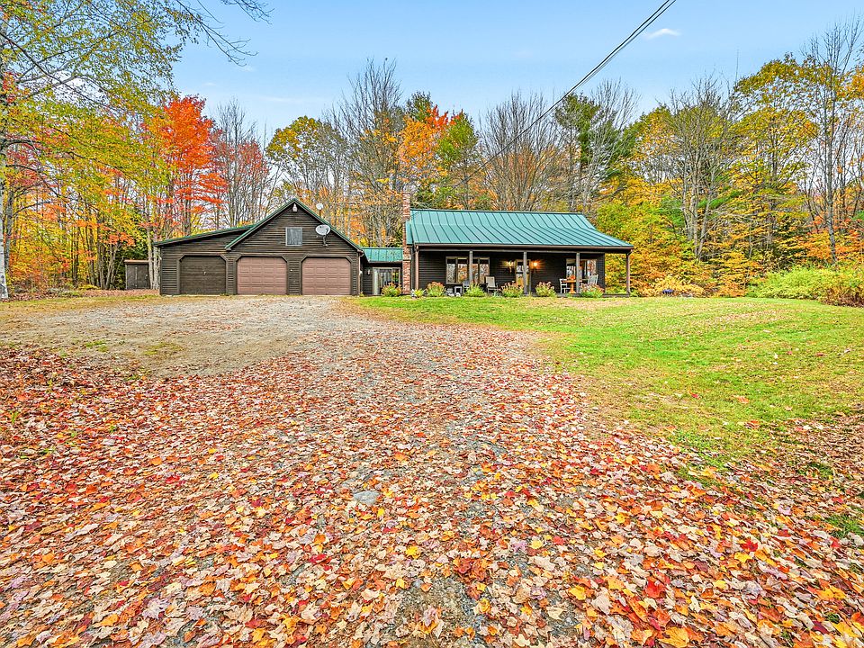 Nestled on 4.5 private wooded acres, this charming well-maintained home offers the perfect blend of comfort, charm, coziness & tranquility. Enjoy quiet mornings or relaxing evenings on the covered farmers porch surrounded by nature. Inside, you'll find a cozy wood-burning fireplace, 2-bedrooms, a full bath, cathedral ceilings, an open floor plan living room, kitchen dining area. A convenient mudroom off the kitchen leads to the attached 2- car garage with a workshop. Just a short distance from the beautiful Kennebec Highlands Conservation lands, you'll have easy access to hiking and groomed trails right nearby. Ideally located within easy reach of Waterville, Oakland, Augusta & Farmington, this property makes a wonderful year-round residence or a peaceful seasonal getaway. Surrounded by lakes & ponds, it's the perfect retreat for those who love the Maine outdoors.