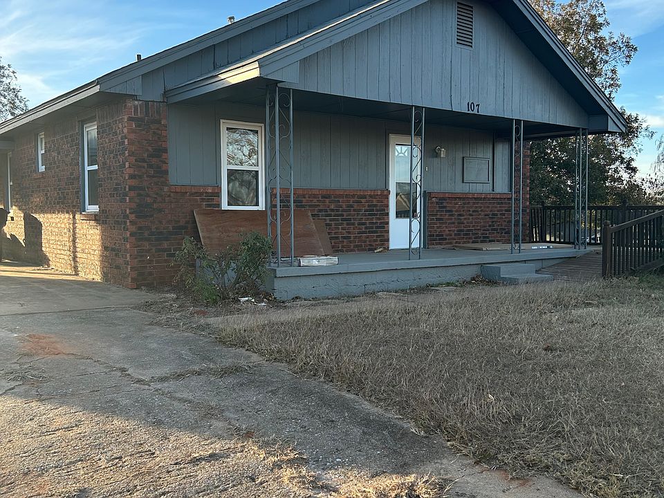 Includes storage building, storm shelter, utility room with washer/dryer hookup, oven/range, refrigerator, trash compactor and dishwasher. Gas log fireplace with remote control. New flooring in Master BR and Utility room. Fully remodeled master bath. Storm door on both exterior doors. Handicap accessible (ramp at front porch and walk-in shower. Attached covered parking.