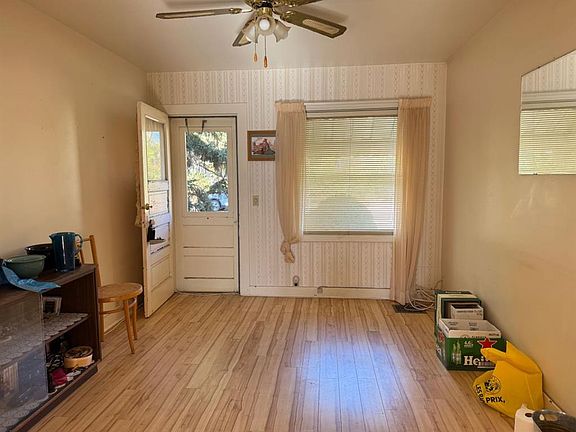 This adorable home is the perfect first home or an affordable revenue property. 2 bedrooms on the main level and a large flex space on the second level, used as a bedroom. The eat-in kitchen, bathroom and bedrooms all have the solid original cabinetry making this home full of storage space. A partially fenced yard and a detached garage needing a new roof. Shingles on the house are 12 yrs old.