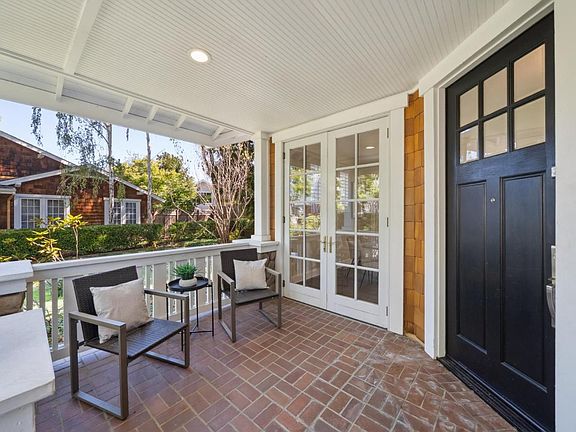 Cape Cod Charm, Modern Living | Welcome to this Cape Cod style, elegantly maintained residence offering a versatile floor plan with refined finishes and charming outdoor spaces. An inviting front porch framed by French doors leads to a vaulted living room and a dining area that opens through back French doors to a covered deck with seating, perfect for morning coffee. The open kitchen features a farmhouse sink with a large window above, white cabinetry, stainless steel appliances, gas stove, built-in oven, pantry, and built-ins. The family room, with oversized windows and shelving, connects through sliding doors to the backyard a paved retreat framed by trees and accented with fountains, ideal for dining and entertaining. Upstairs, the primary suite offers a walk-in closet and a bath with soaking tub, walk-in shower, and modern finishes. Two bedrooms share a connected bath, while a versatile office/den with a glass barn door adds flexibility. A laundry room with shelves upstairs. Highlights include plantation shutters, a two-car garage with Tesla charger, Tesla battery backup, leased solar, and thoughtfully designed built-ins. Set within a serene community close to shops, dining, commuter routes, and highly rated schools, this home delivers timeless style with modern ease.