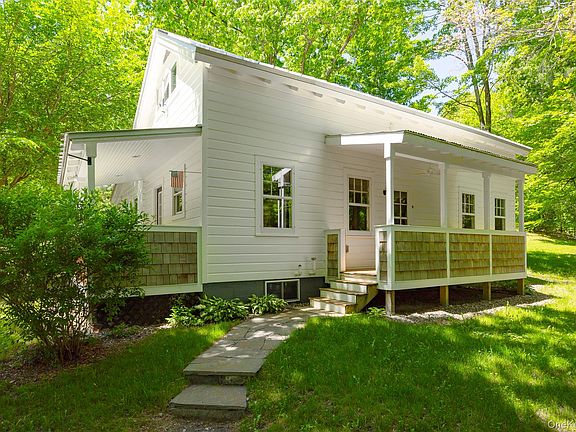 A true Hudson Valley treasure! Step into this enchanting 1934 Hudson Valley home, where vintage charm meets modern sophistication. Set on nearly 2 peaceful acres, this 2-bedroom, 2-bath retreat features a cozy open floor plan with an inviting fireplace/woodstove, multiple skylights, exposed beams, incredible architectural lines, and beautiful Doug fir wood floors. Offering a perfect blend of historic charm and contemporary convenience, this home is truly move-in ready. Lovingly maintained with significant updates over the past 20 years, including new windows, a standing seam roof, fresh exterior paint (2023), and more, this home has been thoughtfully cared for to ensure worry-free living. Major system upgrades include a new septic system (2024), a submersible well pump (2018), Fujitsu mini-splits (2022), and a new water heater (2023). The expansive, nearly 2-acre lot offers a natural oasis with mature plantings, fruit trees, and open spaces perfect for unwinding - kick back on your front covered porch or your back sundeck to take in the beauty, or meander around the yard tending to your flower or herb garden. A separate studio with electricity invites creativity, providing an ideal space for an art studio, home office, or workshop. Ideally located just 10 minutes from Red Hook and 20 minutes from Rhinebeck and the Amtrak station, with easy access to Pine Plains, Millerton, Hudson, and the Taconic Parkway. Only a 90-minute drive to NYC’s George Washington Bridge, this property offers the best of both worlds—serene country living with convenient city access. Embrace the timeless beauty of the Hudson Valley lifestyle! Schedule your showing today.