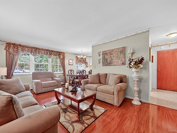 Beautifully Maintained First-Floor Condo in Bedford Terrace! Perfectly situated between downtown Bedford Hills and the Village of Katonah, and close to Mount Kisco, this home offers low-maintenance living with exceptional convenience and charm. The open layout features a spacious living and dining area with a large picture window, crown moldings, and wood flooring. The kitchen provides clean white cabinetry, ample workspace, and a seamless flow into the dining area. The primary bedroom includes a private half bath, while both bedrooms are generously sized with excellent closet space. An updated full bathroom showcases modern tilework, a sleek vanity, and brushed-nickel fixtures. The monthly common charge of $607.05 includes heat, hot water, and storage space in the basement near the common laundry room. One assigned parking space included. An additional space is $25/ month, if available. The Basic STAR exemption reduces taxes by $1,219. Residents enjoy the Memorial Town Park with a pool and playground. Ideal for first-time buyers, downsizers, or a weekend escape, this move-in-ready first-floor condo captures the best of Bedford Hills living.