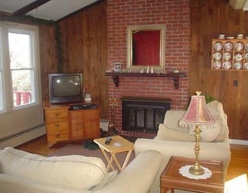 Living room with cathedral ceilings; and brick fireplace; atrium door to new 13x18 deck open to kitchen/dining; master BR w/private bath; walk out lower level family room w/wet bar; HW floors; replacement windows; new propane gas furnace and metal roof.