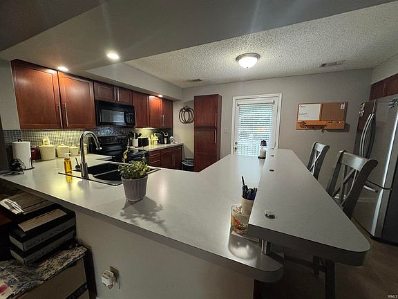 Remarkable, Remodeled Townhome Condo featuring 2 Bedrooms, 2.5 Baths, and a 1 car carport in Newburgh with all the conveniences close by-Gas station, Grocery, Restaurants, and Entertainment. Welcoming covered front porch leads you into the spacious great room. A cozy gas log fireplace with stone decor is located in the corner of this great room. Open to the living space is an informal dining room(currently being used as an "at-home" office0. Across from the dining room is a convenient half bath. Chef's delight kitchen with beautiful wooden cabinets, breakfast bar (including 2 bar stools), and all appliances (Ref being replaced with one in the pictures). The laundry closet is located across from the kitchen-wash clothes and cook at the same time! An access door in the kitchen leads you to a small deck area complete with a built-in storage shed for off season patio furniture. A staircase directs you to the backyard Community area for all the condos. Upstairs you will find two bedrooms and two full baths. The guest bedroom features double closets and ceiling fan light. Along the hallway is a guest bath complete with tub/shower combination-all in new ceramic tile. The private primary suite is very desirable in size, has a lighted walk-in closet plus a second closet, and a remodeled bathroom. The home has all new windows that were installed in 2024. The roof was installed in 2023 by the association. The furnace is approximately 7 years old. The monthly association fee is $177.49 which covers all exterior maintenance (except windows and doors), exterior property taxes and insurance, lawn maintenance, and snow removal. Easy living and a value price; surely the condo for you!!!