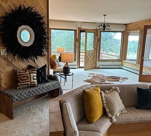 MOTIVATED SELLERS!!!   You need to check out this Contemporary home on quiet, peaceful, sunny and pleasant 3.45 acres!  This confirmed horse property sits on a large and flat lot, a rarity in the mountains, with southern exposure, mountain and meadow views with daily visits from deer and other animals.  The nearly 5,400 sq ft. above ground home has a perfect floorplan for a Multi-Generational family.  This home boasts vaulted ceilings, two fireplaces (one is two-sided), multiple office areas for at-home workers, six large bedrooms, many with on-suite bathrooms.  The decks (three) were sanded and re-stained and the entire back of the house has a wall of sliding doors that makes the home light and bright.  Located ten minutes from historic Bailey downtown area including restaurants and a winery.  This is a must see home, so schedule your showing today!