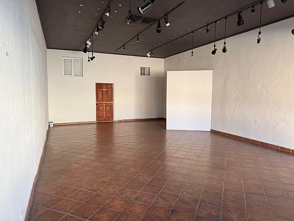 This Commercial Space has a spacious open room in front with gallery lighting, ceramic tile floors and plentiful wall space. The back section of the unit has an office area with an optional closet and lofted space for storage. As a bonus, there is a full kitchen, 3/4 bathroom, and washer (no dryer). This unit is NOT approved for live-work and is to be use for commercial use only. This unit is in a great location with terrific exposure and foot traffic between Bent St. and Taos Plaza. Tenant is responsible for utilities: NM Gas, Kit Carson Electric, internet (optional), and will pay a utility fee of $75 along with rent for TOT water, sewer & WM trash.