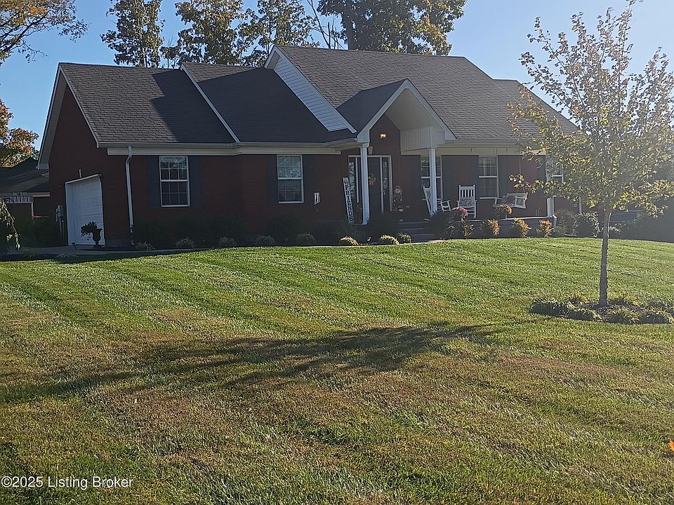 This beautiful home was upgraded at construction with many nice features. Granite counters in the kitchen and bathrooms. Stamped concrete covered patio with a ceiling fan. Stamped concrete 25-foot-long covered front porch, a perfect spot to relax and watch the sunset with the hills of Bernheim forest in the backdrop.