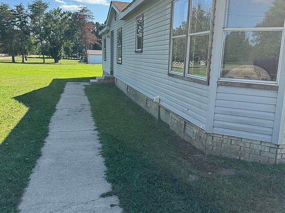 3/2 bath double wide home on permanent foundation that sets on 3.06 beautiful acres m/l. 21 x 27 shop with electric and garage door opener. Additional shed with lean-to would make a great storage building for implements or animals. This home has had a new roof installed 2 years ago both on house and shop. New HVAC unit was installed 2 years ago also. Many upgrades in home includes newer appliances, new shower installed and rooms painted about 2 years. The home is surrounded by concrete walkways that lead to a porch that was installed around 2022. Don't wait this one will not last long. House is being sold AS IS. Agent see remarks