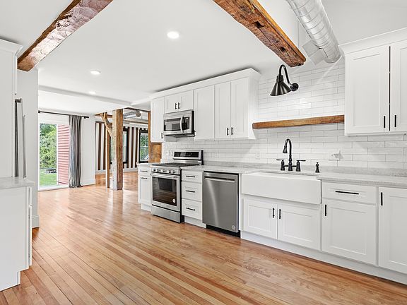 OPEN HOUSE Sat (5/24) 11am-1pm! Looking for a turnkey modern farmhouse condo with first-floor living? Welcome to Amherst Station Condos; a one-of-a-kind blend of historic charm and modern luxury. Originally built in the 1700s, this thoughtfully reimagined home has been meticulously renovated while preserving the rich character of its past. Exposed post-and-beam construction and original fireplaces offer warmth and authenticity, beautifully balanced by high-end finishes and contemporary design. Step inside to a beautifully updated kitchen, complete with stainless steel appliances, a farmhouse sink, and a large walk-in pantry tucked behind a rustic barn door. The open dining area flows seamlessly into thea light-filled living room where a stunning brick fireplace creates an inviting focal point. The spacious primary bedroom is a serene retreat, featuring another charming brick fireplace and a fully renovated en suite bath. Two additional bedrooms (or Bedroom / Office) offer cozy character with more fireplaces and timeless wood accents. Enjoy morning coffee or evening unwinding on your new stone patio, just off the dining room slider. Each unit includes two assigned parking spaces (one covered under the carport). Home is also upgraded fiber internet and Google Nest! Close to all commuter routes and shopping. Rarely does a home offer this perfect balance of history, comfort, and modern style. Schedule your private showing today and experience Amherst Station yourself!