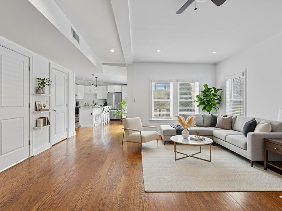 Welcome home to this stunning two-level, 3-bedroom, 2.5-bathroom penthouse in the heart of East Boston. Designed to enjoy, the open-concept main level features a bright kitchen, dining, and living area perfect for entertaining along with a full bedroom and bathroom.