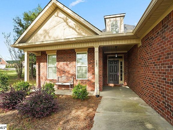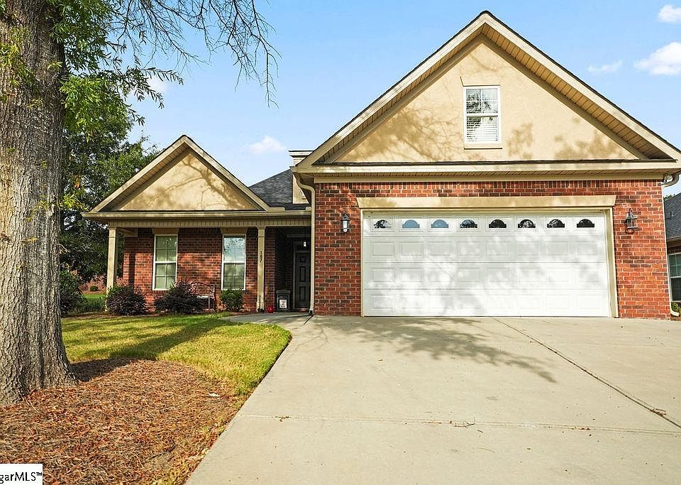 Welcome to 107 Queens Court, a beautifully crafted all-brick, single-story home recently built located in the desirable Queens Court area of Hunters Creek. This thoughtfully designed 3-bedroom, 2-bath home offers approximately 1,907 square feet of quality living space. Inside, you’ll find granite/quartz countertops throughout, heavy trim molding, and smooth ceilings that reflect the builder’s attention to detail. The open-concept great room features a gas fireplace, while the kitchen comes equipped with stainless steel appliances, solid-surface countertops, and a walk in pantry — all appliances convey with the home. The primary suite includes double sinks, a tub/shower combination, and ample closet space. Additional highlights include a larger garage with golf cart door entry, radiant barrier roof sheathing, and stucco accents that enhance curb appeal. Living in Queens Court means true low-maintenance living — lawn care, watering, and lighting are all included in the monthly POA dues. The annual Hunters Creek HOA fee ($350) is conveniently incorporated into county property taxes. A paid home warranty may be included with purchase. This home combines modern efficiency, thoughtful details, and carefree living in one of Greenwood’s most sought-after communities.