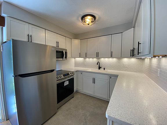 Private deckUpdated bathroomsNew flooringNew carpet in bedroomsNew stainless steel appliancesUnder cabinet lightingSubway tile backsplash