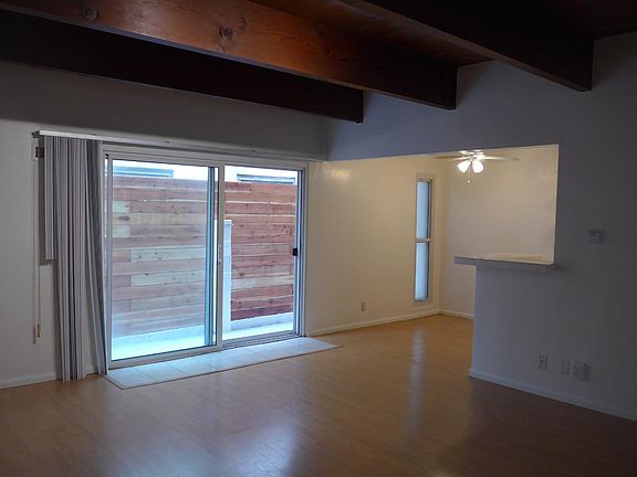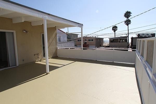 Great Location with the beach just across the street! This two story townhouse style apartment shares only one wall with a neighbor. Upstairs has two bedrooms and one full bath with double vanities. One bedroom opens out to huge ocean deck with partial ocean views. Downstairs has kitchen, cozy side patio, and additional half bath. Walled and gated for privacy with fruit trees outside your door! Comes with a private single car garage. Shared laundry facilities on premises. Tenant pays all utilities. Interested parties please email and provide a contact phone number. Thank you.