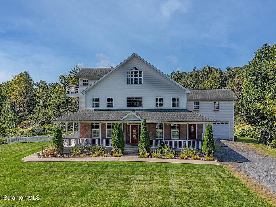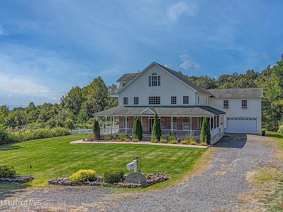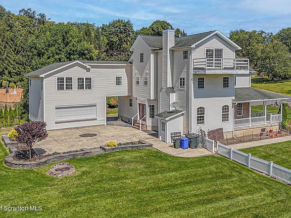 This beautiful Victorian home has so much space to offer in a beautiful, quiet neighborhood surrounded by wooded areas with the most spectacular views. Conveniently located in Scranton near schools and shopping centers. Large open floor plan with high 9' ceilings on the first floor, third floor and basement. The spacious open kitchen has granite tile counter tops with a large island and peninsula, with combined seating for 8 or more, ready for entertaining family, friends, and guests. The kitchen has a built-in desk and plenty of cabinet space. One gas fireplace in the basement which is ready to be finished and converted in to even more living space or leisure area and one wood burning fireplace in the living room. 4 bedrooms, 2 full bathrooms and 3 half bathrooms. Large 2nd floor laundry room. There are 2 primary bedrooms. One on the 2nd floor with a full suite bathroom and the third floor is an almost 900 SF that can serve as additional primary bedroom or guestroom that offers a balcony with spectacular views of Montage Mountain. There is a bonus/media/play room over the garage, which is connected to the main home by a catwalk. A large patio in a private back yard, perfect for entertaining. Two-car garage and off-street parking that can accommodate 15 vehicles.